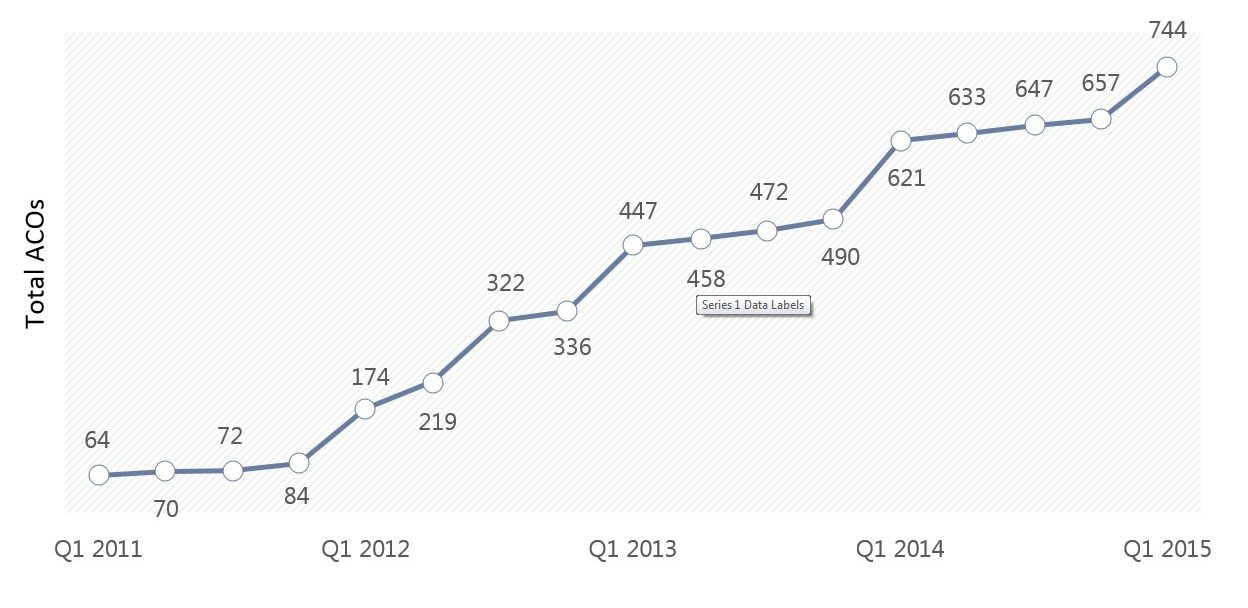 the Medicare Shared Savings Program (MSSP) as accountable care organizations (ACOs). And while this is less than the amount joining the cohort in 2013 and 2014, expansion is expected to continue.graph of number of ACOs in the US through 2015 - HealthCare Recruiters International